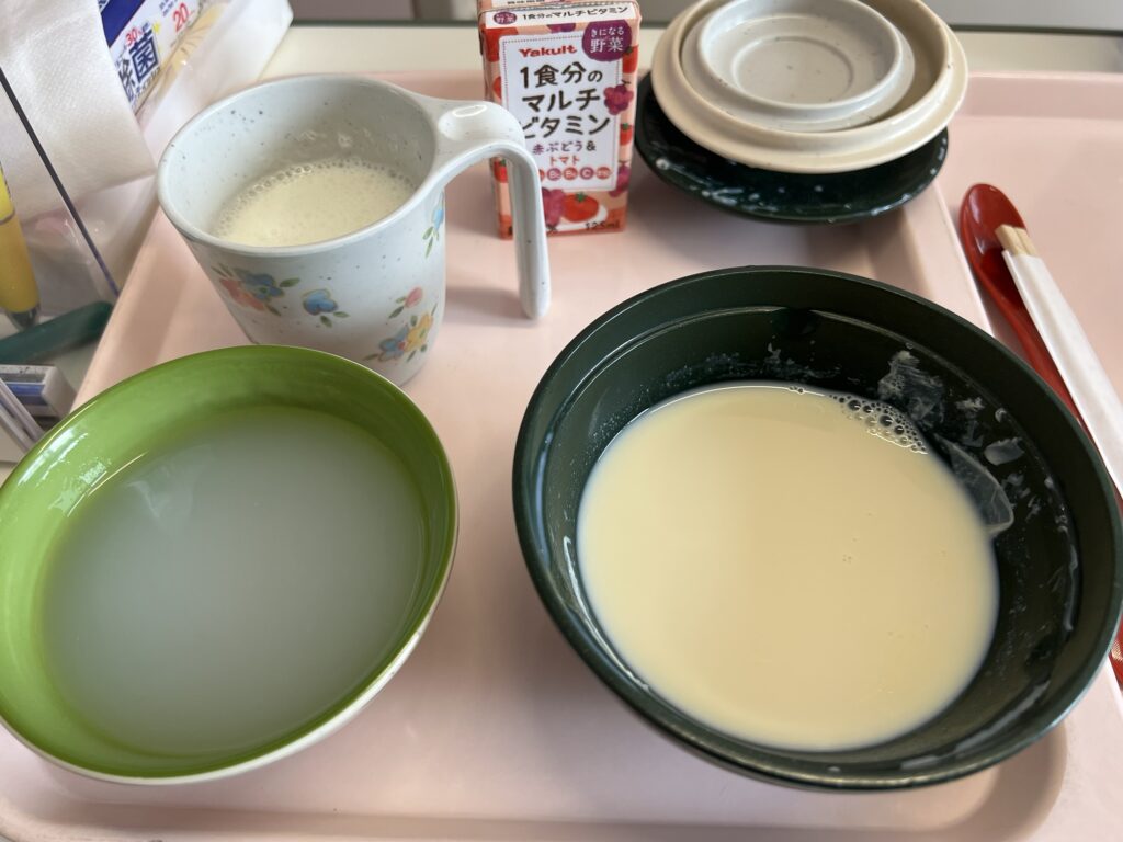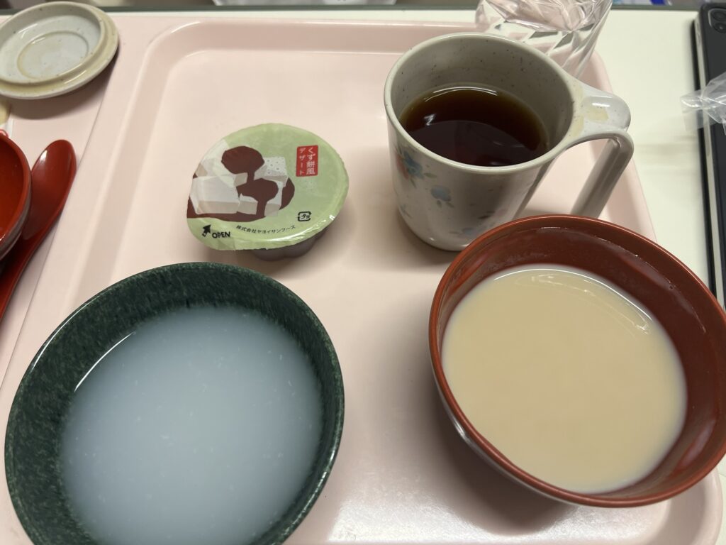 豆腐の汁みたいなのが粉っぽくてキツかったです。ヤクルトが増えてましたがトマト飲めず、、、